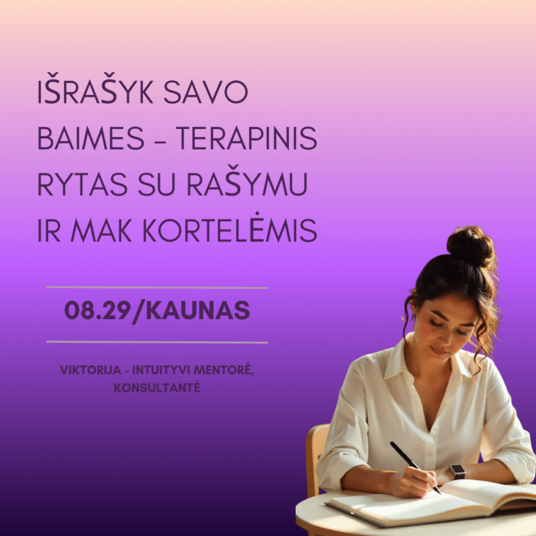 Atraskite vidinę ramybę ir įveikite savo baimes dalyvaudami grupiniame užsiėmime su Metaforinėmis Asociatyvinėmis Kortelėmis (MAK). Šioje sesijoje tyrinėsime jūsų vidinius procesus, atrasime atsakymus į svarbius klausimus ir mokysimės transformuoti baimes į vidinę harmoniją.